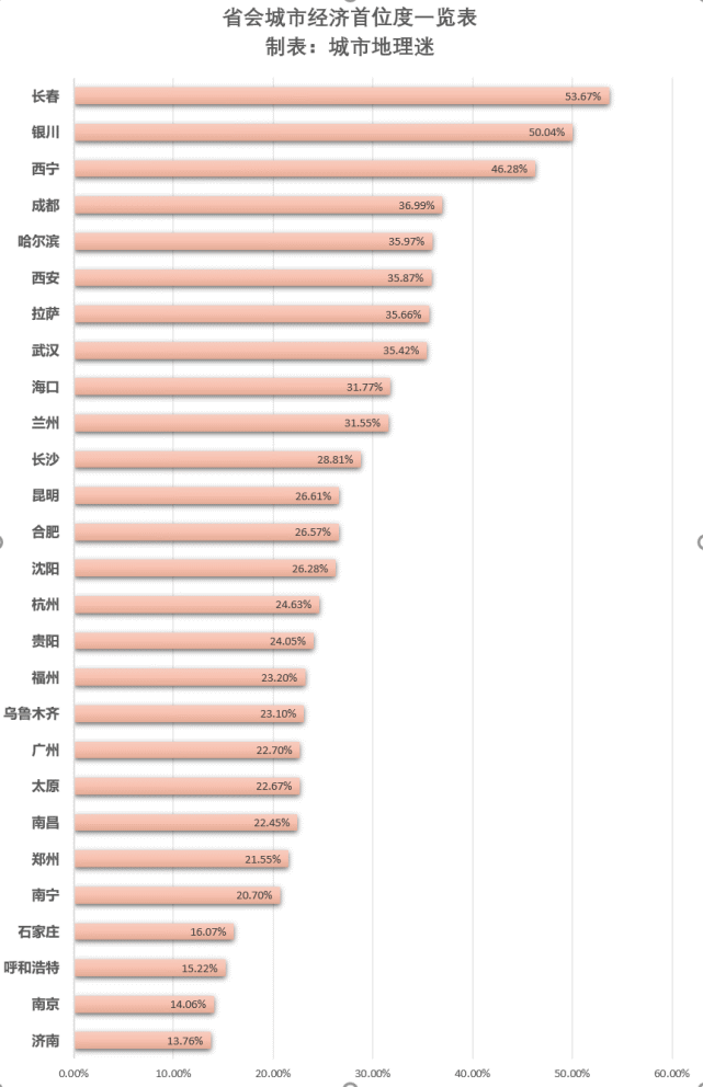 之所以它存在感最低,是因为在全国省会与首府城市的首位度排名中,济南倒数第一。