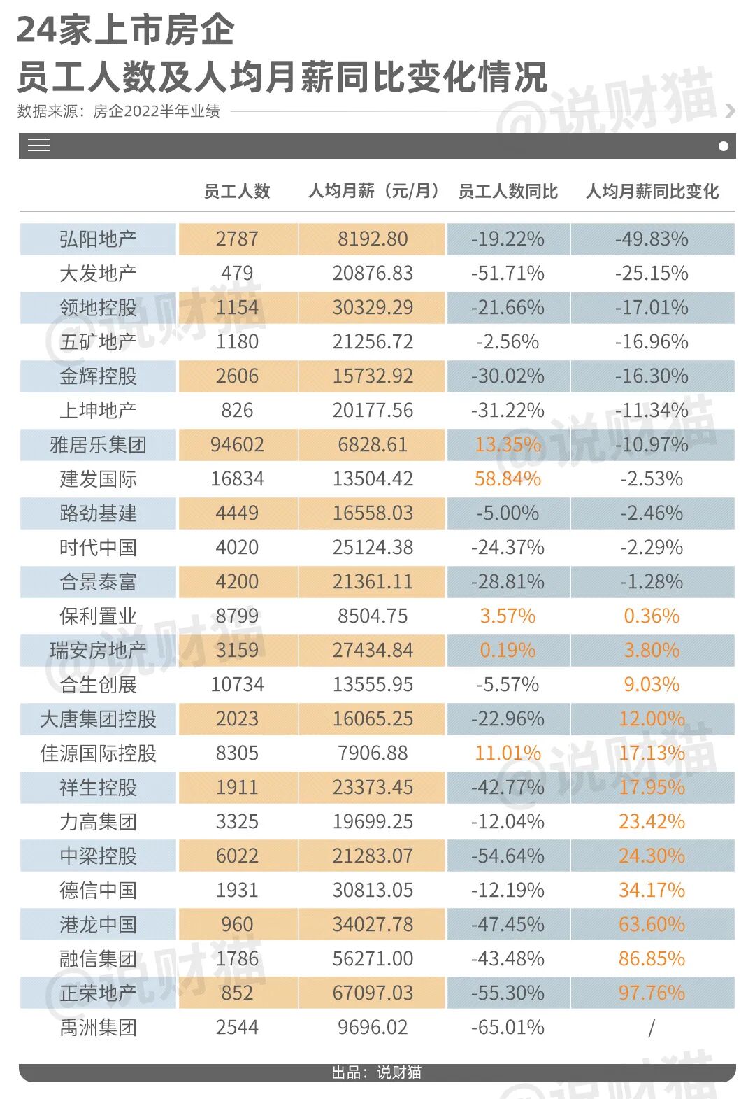 最近上市房企纷纷公布了半年报。宇宙第一房企碧桂园上半年裁员了22172人,禹洲、中梁裁员4000+,雅居乐裁员3000+,美的置业裁员2000+,时代中国、宝龙地产、合景泰富、祥生控股、合生创展裁员都在1000+。