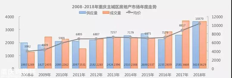 数据显示,在很长一段时间里,重庆的楼市供应都大于需求。只在2017年失衡严重的背景下,房价上涨了17%。