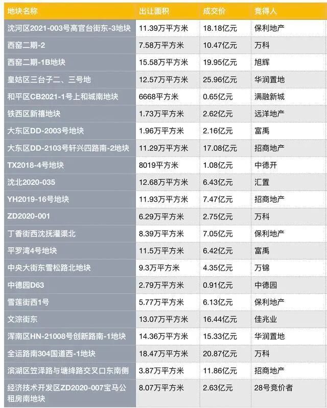 但沈阳此次成交的22宗地块,覆盖了皇姑区、和平区、大东区、铁西区、沈北新区、于洪区、经济技术开发区、苏家屯区、浑南区、沈河区各个城区,其中郊区地块也不少。