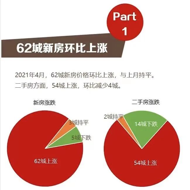不久前国家统计局公布的4月份70个大中城市房价数据显示,70大大中城市中,有62个城市新房价格上涨,有54个城市二手房价格上涨。