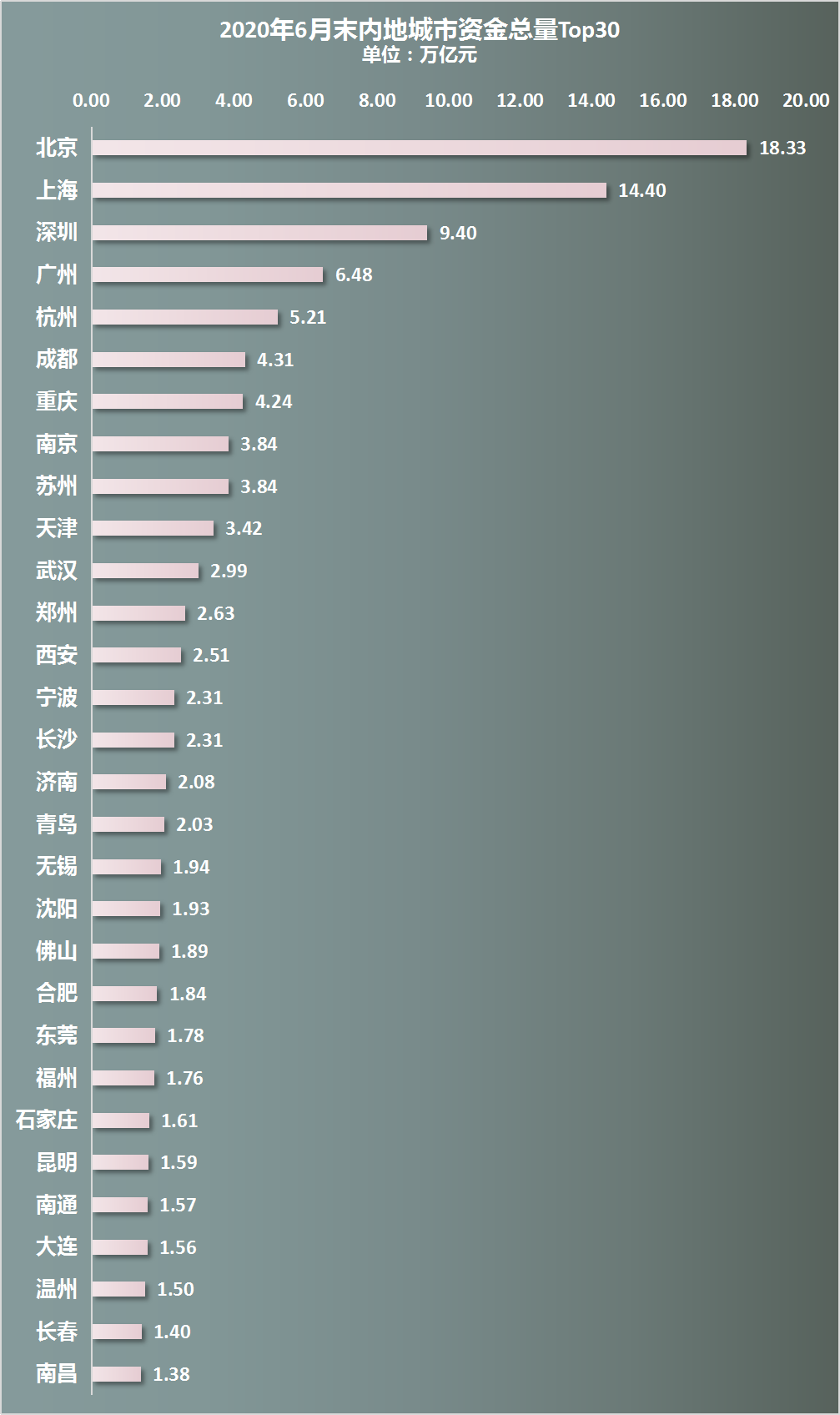 在资金总量方面,内地30强城市,北方依然只有10个,南方占了一大半。