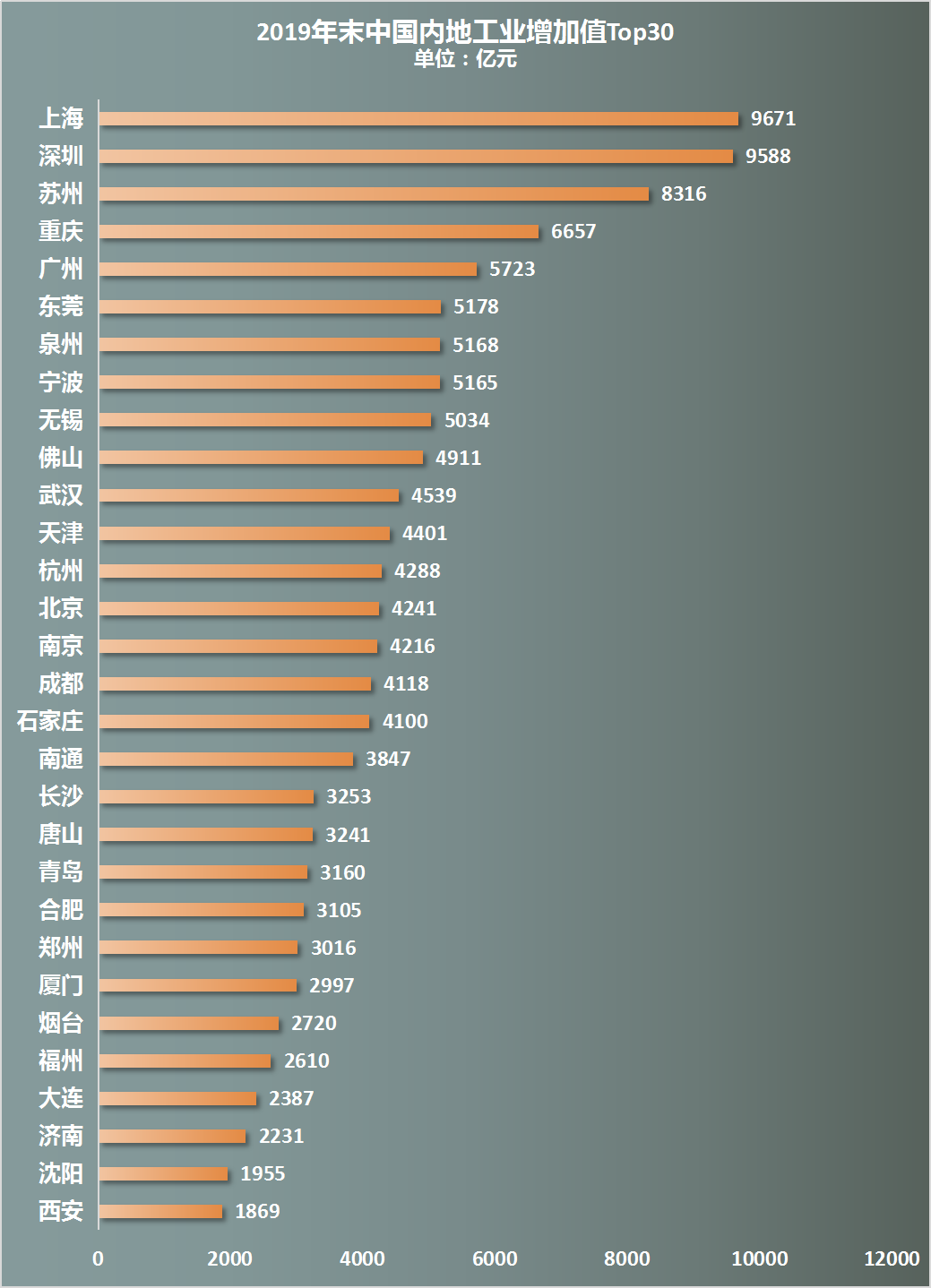 而曾经北方引以为傲的工业实力,也在过去40多年的改革开放中,发生了重大变化,在工业实力前30城市排名中,南方同样具有碾压优势,占据20个,北方只有10个。