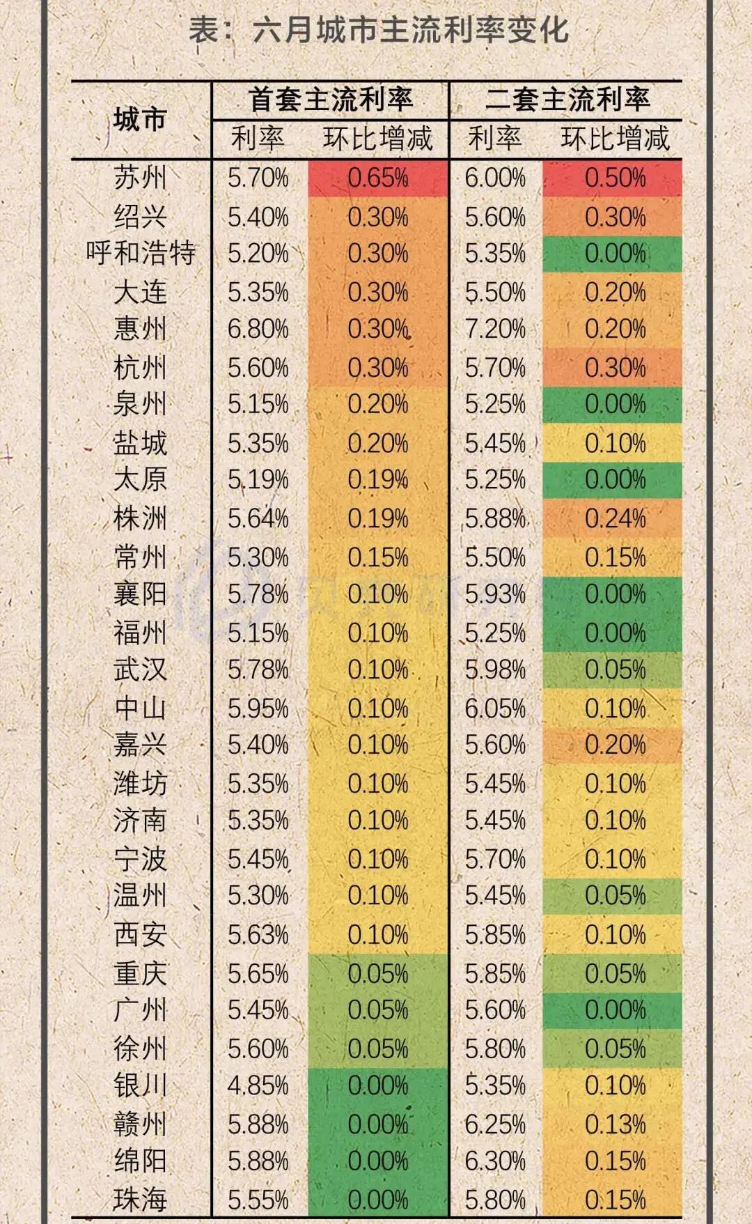 6月份贝壳研究院追踪的72个城市中,有28个城市房利率发生变化,其中24个城市首套房贷利率上浮,22个城市二套利率上浮,重合的18个城市首套、二套利率均提高。