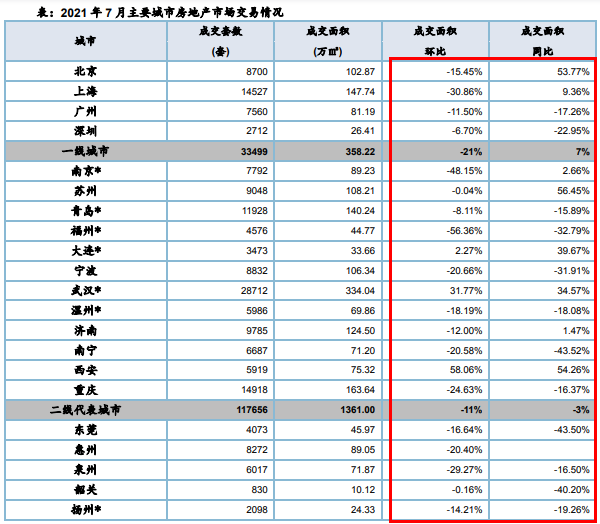 根据中国指数研究院披露的数据显示,7月份主要城市成交面积环比下降14.30%,超8 成城市环比均有不同程度下降,同比则下降4.29%。