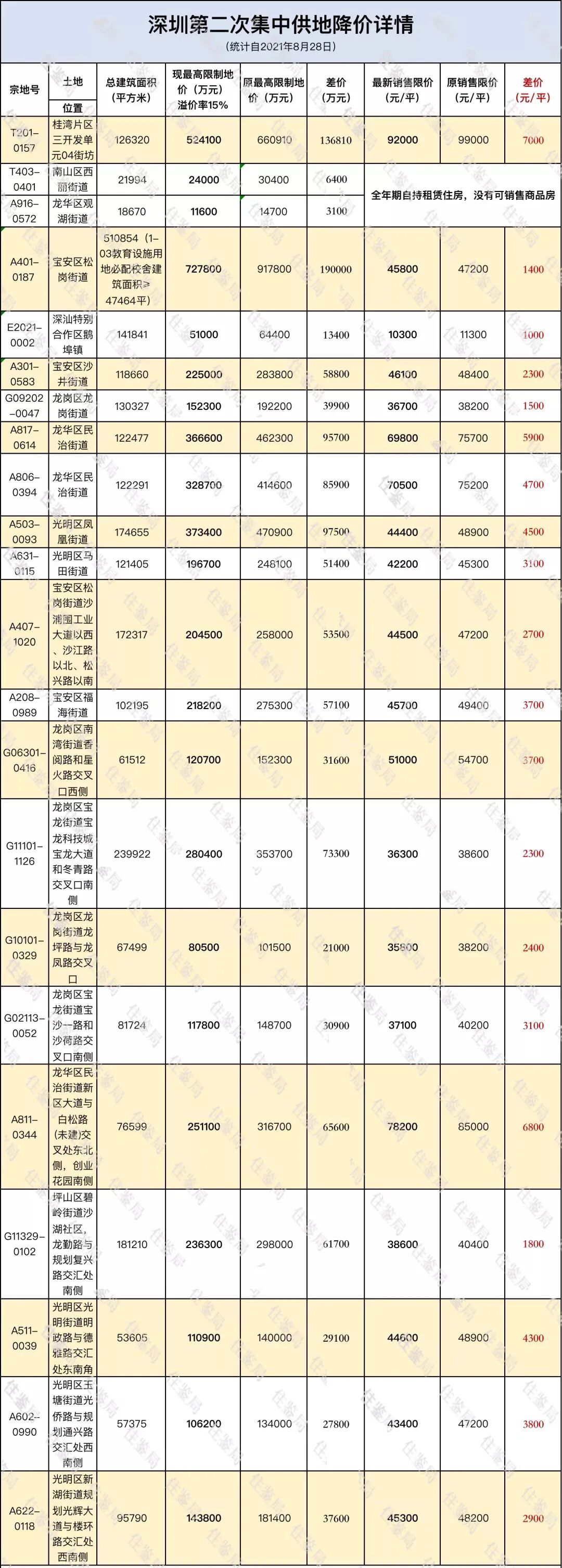 22宗地块,新房限价前后的降幅在1400元至7000元/平方米之间。