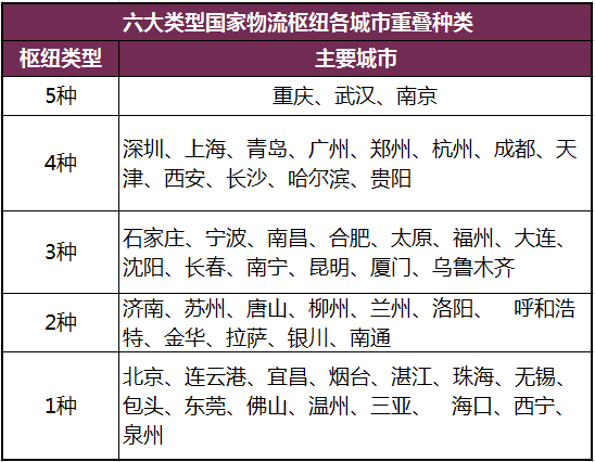 本号梳理过,结合之前批复的各种物流枢纽以及未来将要批复的各类物流枢纽,重庆、武汉、南京三个城市是重叠类型最多的三个城市,均身披5个枢纽,也即陆港型、港口型、空港型、生产服务型、商贸服务型五大类型国家物流枢纽。