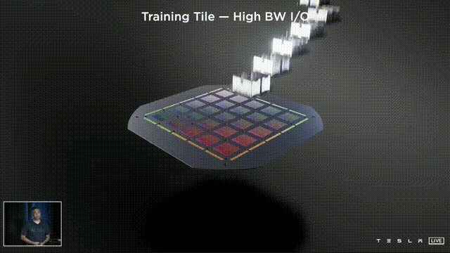 正式亮相的Dojo,是一种通过网络结构连接的分布式计算架构,具有大型计算平面、极高带宽和超低延迟特点。