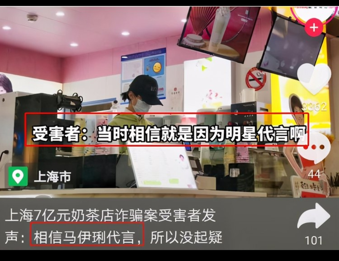 近日,国内某明星代言的一款奶茶品牌“因涉及违法犯罪”被公安机关立案调查。虽然该明星方面表示已向这款奶茶品牌提出解约,但网友们并不买账。毕竟,此事涉及的不是一支难用的口红、一杯难喝的奶茶,而是一起涉案金额高达数亿元的诈骗案。