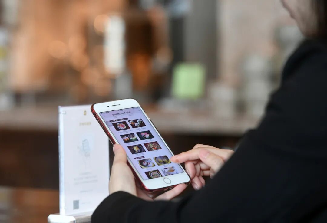 顾客在餐厅内通过手机扫码点餐。赵子硕摄(新华社)