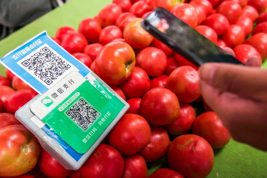 消费者在集贸市场扫码支付。王继林摄(中经视觉)