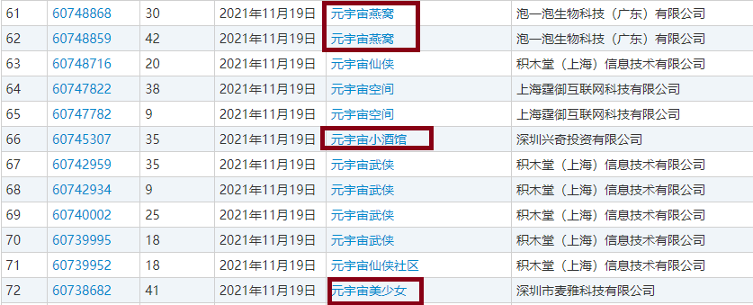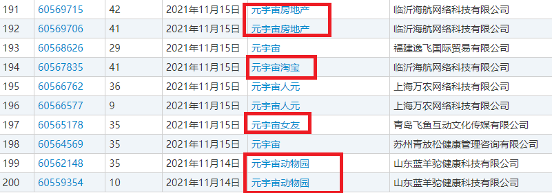 数据显示,截至12月7日,全国已经有7900多件“元宇宙”相关商标注册申请,99%以上是今年申请。按照我国商标注册申请约4个月的审查周期,如果这些商标均在不同类别、不构成近似,那么最迟到明年4月,全国可能就有近8000个元宇宙相关商标等待批准。