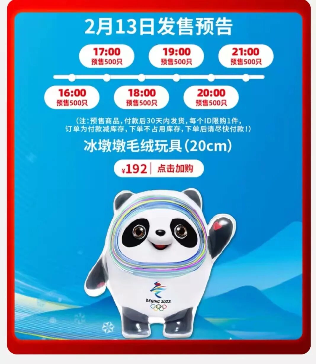本周,北京冬奥会吉祥物“冰墩墩”在奥林匹克官方旗舰店开启新一轮预售。以最受欢迎的玩偶为例,每小时500只,持续秒空。