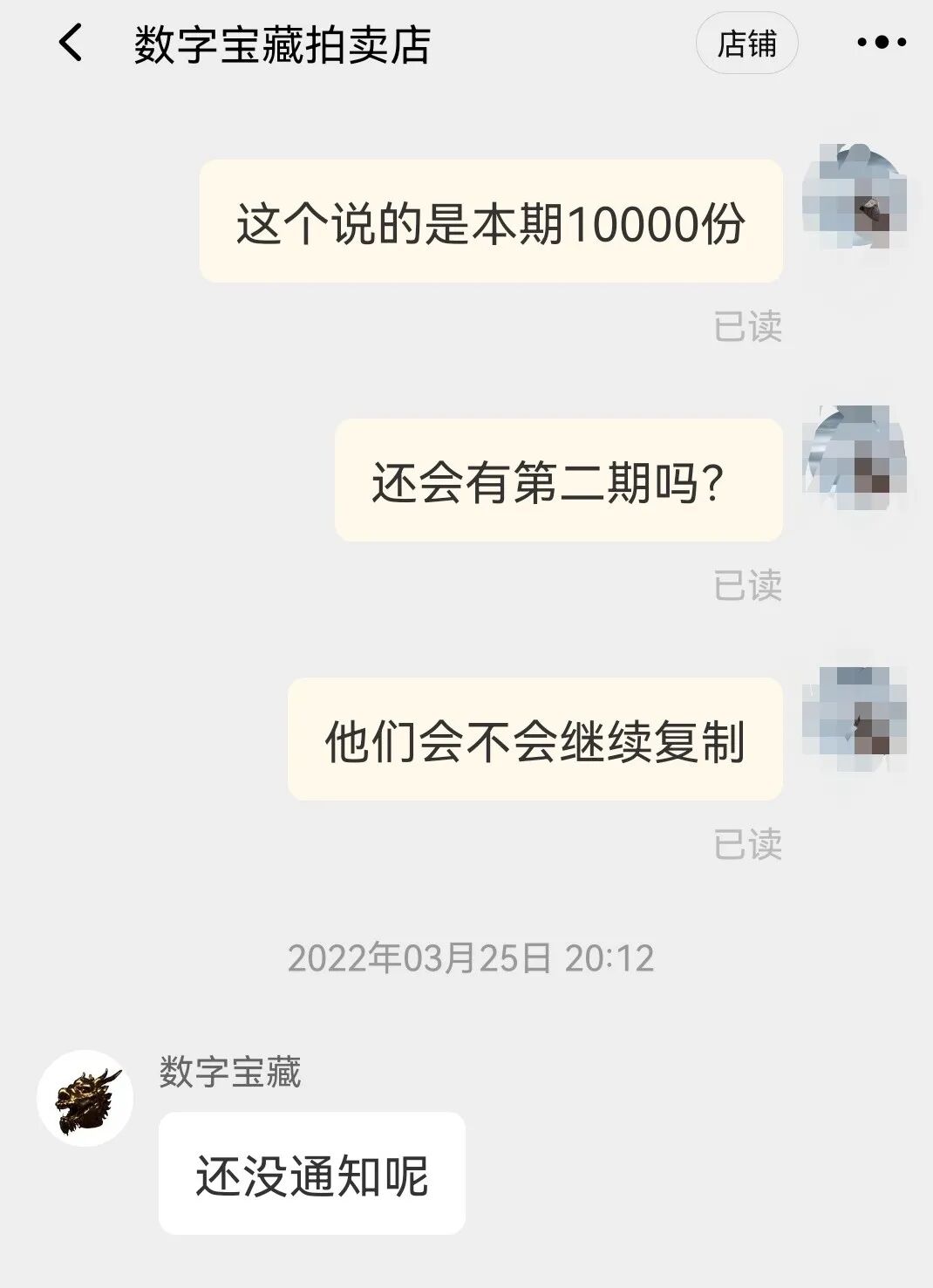 目前,部分平台采取直购价结合拍卖价的发售方式,但这种价差不一定能捡漏,还可能留下市场无序的漏洞。以圆明园兽首系列为例,十二兽首本期各有10000份,其中9982份可以用29.9元直接购买,且不限量,90天后可以通过微信小程序转让,真正拿来拍卖的仅有1份。这就很微妙了,因为这1份拍出的数千元高价会成为前面低价“同款”转让时的参考价。而且,会不会继续出下一期呢?业内人士认为,不排除有买家前期大量囤货,然后炒高拍卖价格,以便后期高价“转让”。