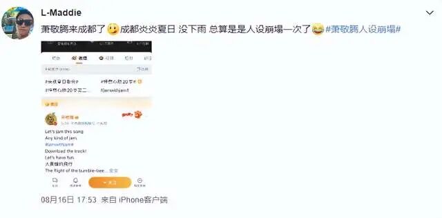 据悉,萧敬腾目前正在四川成都录制节目,而他最近一段时间的微博IP属地,也一直是显示在四川的。那么问题也就来了,被外界尊称为“雨神”的萧敬腾,在成都待了好长一段时间了,却不见一滴雨落下来,天天烈日当空照,属实有些货不对板。