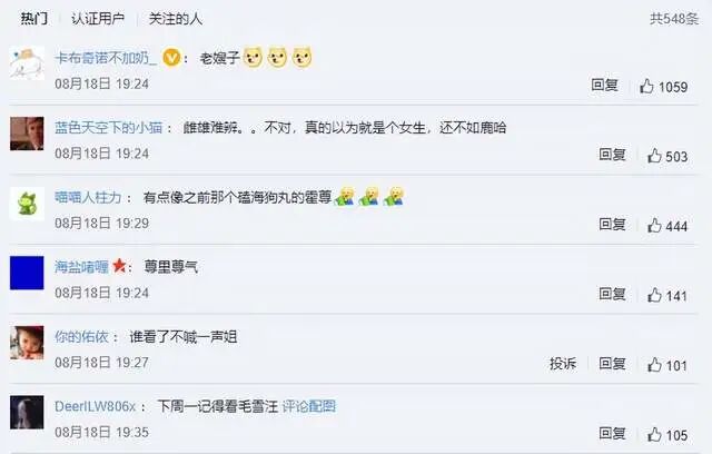 除此之外,包括很多网友看到后,也是酸言酸语对鹿晗进行攻击,说他这个造型像女生,真的有点儿雌雄难辨,甚至有的带有恶意,开鹿晗的玩笑说,想叫他一声姐姐。