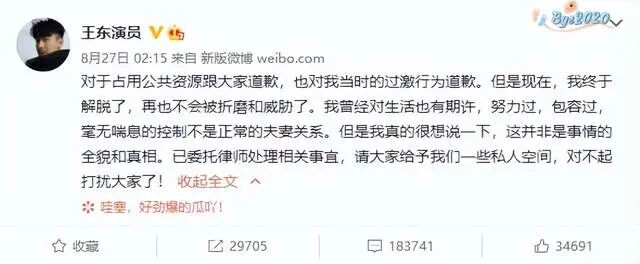 近日,知名男演员王东遭妻子控诉家暴,视频被曝光出来后在全网引起了非常大的关注,后来王东通过微博公开道歉,并发表了迷惑言论称“终于解脱再也不会被折磨和威胁了”,同时他还解释称大家所看的并非真相全貌,后续将会全权委托律师处理相关事宜。