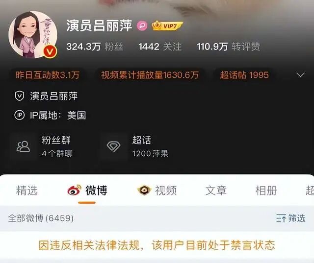 近日,有网友意外发现常年旅美的影后吕丽萍,已经从美国回到了中国,因为她的微博IP定位显示在北京,但由于被禁言的缘故,无法更新任何动态信息。在上个月的时候,她因通过微博公开悼念日本前首相安倍晋三,遭到了大量网民投诉举报,最后被平台禁言处理,至今都还没有解除禁言状态。