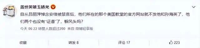 其实在悼念安倍晋三之前,吕丽萍就因为在微博上发表不当言论遭到了炮轰,那个时候正好是美国的国庆节,她引用了美国总统肯尼迪的爱国宣言,在微博上公开给美国庆生,还说了一句生日快乐。