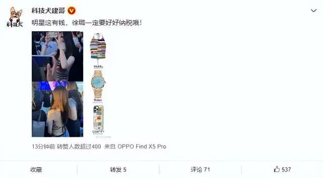 可让人万万没想到的是,徐璐因为这身穿搭引起了不小的争议,主要是有人扒出了她这一身行头不简单,大到手表,小到手机壳,清一色都是名牌货,让不少对她重新刷新了认知,没想到她也会有这样的炫耀心理。