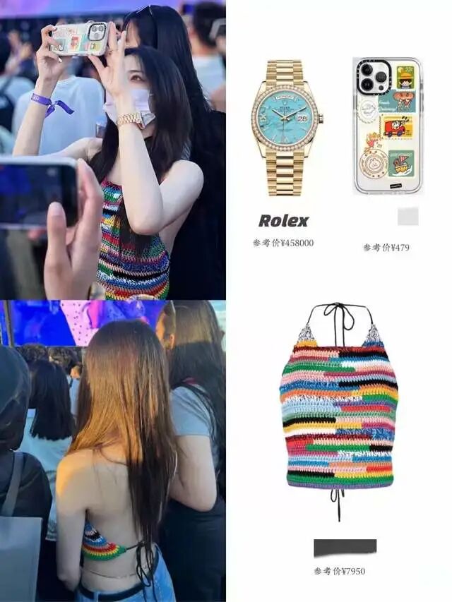 比如说她左手腕佩戴的大金表,价值高达近50万元,而抢眼吸睛的露背装,也要将近8000元,不怎么起眼的手机壳都要差不多500元,果真是有钱人的世界,超出了想象。