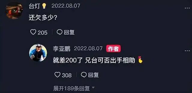 甚至他还不惜自降身段,走上了直播带货的道路,成为了一个带货主播。其中有一段对话让人看完后,心里头是五味杂陈,有影迷问他目前还欠多少钱,李亚鹏开玩笑说道:“就差200了,兄台可否出手相助。”