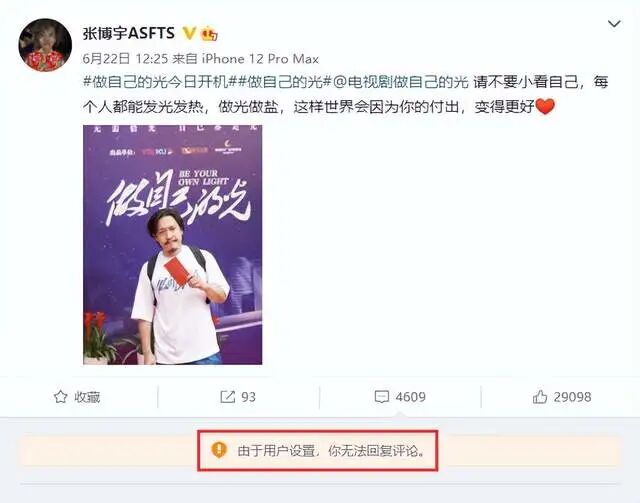近日,有网友意外发现知名男演员张博宇已经将微博评论权限关闭,同时也有很长一段时间没有更新动态,就连出演新剧杀青也没有在微博上做任何宣传,很有可能是受到了他妈妈吕丽萍所带来的负面影响,迫于舆论压力只好选择沉默消声。