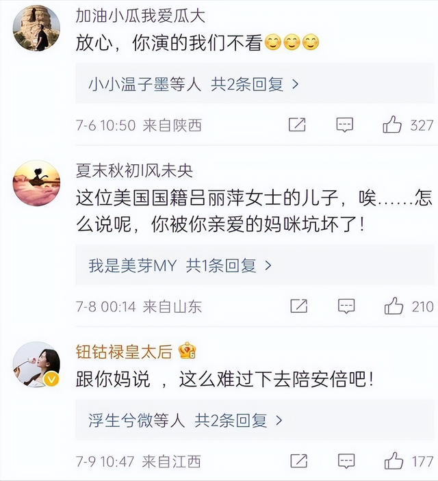 当时吕丽萍被禁言之后,张博宇的微博评论区是恶评如潮,几乎都是在骂他,甚至有的扬言要抵制他出演的戏。