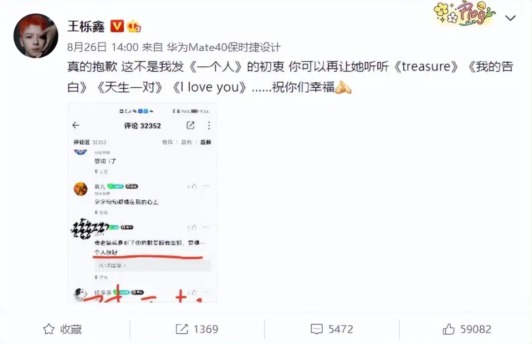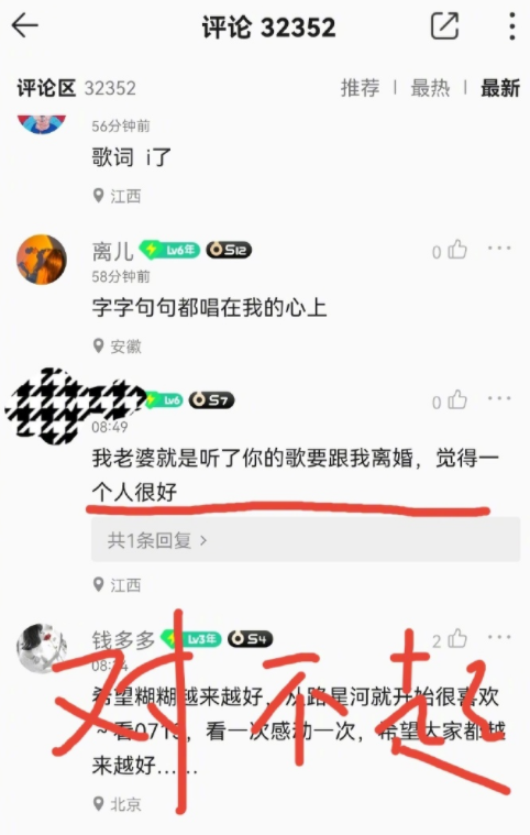 可今时不同往日,前段时间王栎鑫公开道歉上了热搜,一位女歌迷的老公在他新歌评论区里头留言抱怨,说老婆自从听了他的新歌之后吵着闹着要离婚。可没想到王栎鑫居然看到了,还特意标记出来写上“对不起”,同时还发博向这位留言的网友道歉。