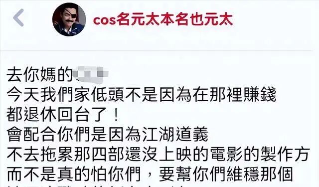 可让人万万没想到的是,李立群的形象才刚刚得以修复,一位自称是李元太的网民,在海外社交平台上大放厥词,公然挑衅,说他们李家之所以低头就是因为在内地赚钱,还说李立群都退休回台了,是出于江湖道义配合演戏,目的是不想拖累四部还没有上映的电影的制片方。