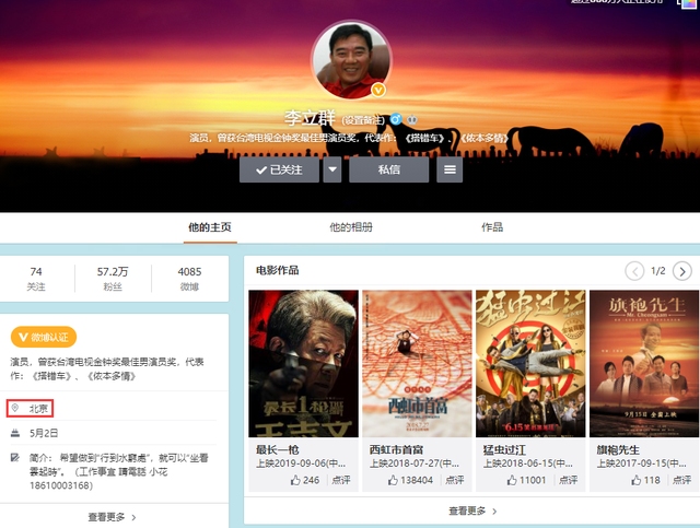 日前,有网友在微博上爆料称,老戏骨李立群的微博IP属地显示在北京,很有可能已经重返内地,再次引起了很多人的关注。此前他因接受台媒采访,发表不当言论险些晚节不保,后来又发视频辟谣假儿子,已经有长达二十多天没有再更新任何动态信息。