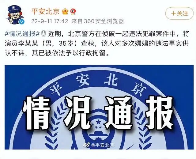 当然,李易峰被拘留肯定不是当天发生的事,因为从北京警方发布的通报内容,可以找到明确的答案,那就是通报开头的“近期”,顾名思义就是最近发生的事,并没有交代具体时间,这也就能够充分理解,李易峰在被警方通报之前,还能够发微博混淆视听的原因。