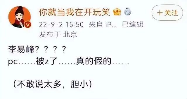 李易峰突遭“中秋劫”,经纪人发朋友圈辟谣,在媒体群抱怨被黑了