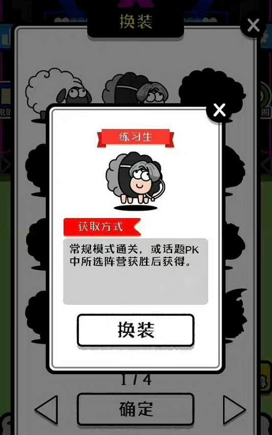 从游戏截图的正中央,可以非常清楚地看到一只造型奇怪的卡通羊,虽说人形被刻意模糊浓缩了,但还是可以找到与蔡徐坤相关的特征,比如说黑色背带裤,以及灰色中分发型。