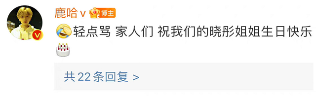 然而鹿哈压根就不把这些负面评论放在心上,反倒还劝大家轻点骂他,表示自己只不过是祝晓彤姐姐生日快乐,没有别的意思。
