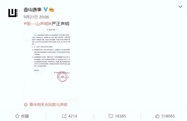 截止发文时间,张一山工作室对外发布的严正声明没有被平台删除,那么基本上就能够断定张一山并没有出事,这一点可以完全参照李易峰。