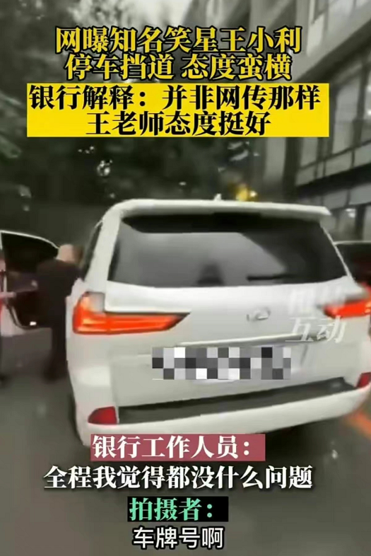 对此,银行工作人员通过媒体对外回应称,拍摄者目的性很强,当时并没有拿手机拍摄,可当得知是王小利之后,立马回车内取手机拍视频,从拍摄到挪车都没有超过一分钟的时间。