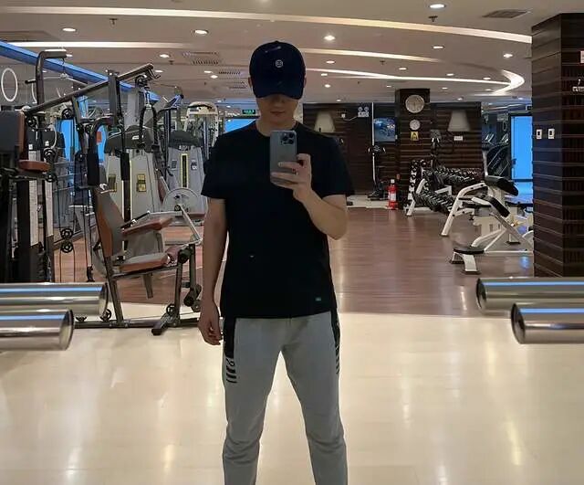 其实从这一张健身照里头就可以找到答案,他跟大多数同龄人相比,还是比较前卫时髦的,比如棒球帽,黑色T恤和灰色长裤,一套搭配下来,运动范十足,拉风又酷帅,这一点倒是没得说。