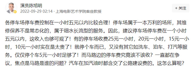 近日,老戏骨陈旭明在多个社交平台上发声吐槽停车难,主要是因为现在各个地方的停车场收费太贵了,建议停车费控制在一小时五元以内,这样才算是比较合理的价格,同样也是大多数车主能够接受的。