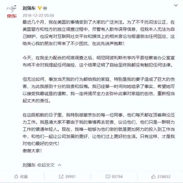 至于交涉内容是真还是假,至今还是一个大大的未知数,但基本上能够确定的是,刘强东跟女方确实发生过什么,要不然也不会闹出这么大的动静出来,而刘强东四年前也不会公开去道歉,深深自责做了对不起妻子和家庭的事。