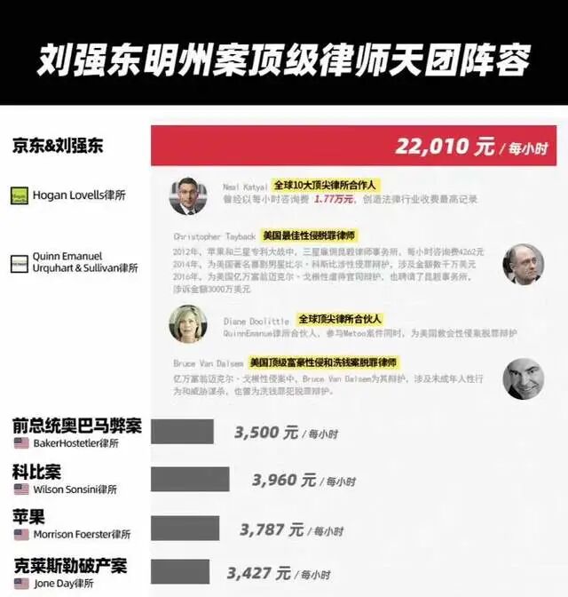 刘强东天价律师团被曝光:1小时收费22010元,专门给有钱人打官司