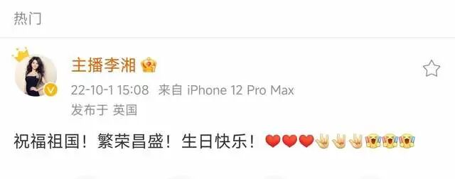 但是在两天前的时候,李湘久违更新了微博,给祖国母亲送上了最真挚的生日祝福,其中IP属地显示在英国,引起了很多人的关注。