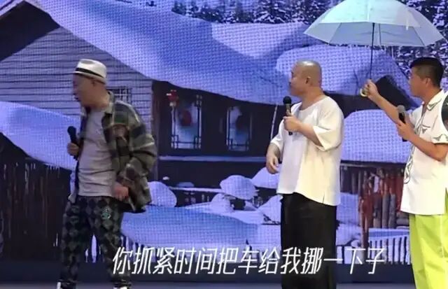 演出开始的时候,只有王小利一个人站在台上跟观众唠嗑,可没想到刘小光突然冲上台,对着王小利大喊道,赶紧去把车挪一下。王小利一听,有些没缓过神来,紧接着刘小光又复述了一遍,他这才明白过来。