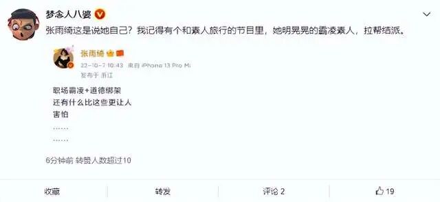 甚至还有大V拿张雨绮上真人秀节目说事,说只有她欺负别人的份,可没有别人欺负她的份。那么现在问题在于,她这次发声究竟是为了谁,的确得先打上一个大大的问号。