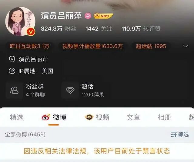 尤其是今年7月份的时候,吕丽萍通过微博公开去悼念遭到枪击身亡的日本前首相安倍晋三,哭得是梨花带雨,犹如痛失至亲一般,遭到了铺天盖地的谴责和辱骂,最后微博被禁言了,到现在都还没有解封。