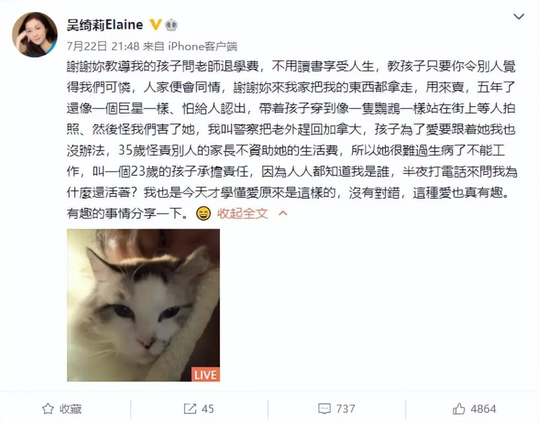实际上,吴卓林之前闹出的认父风波,始作俑者就是Andi,此前吴绮莉多次发文痛批,说女儿遇人不淑,被这个加拿大网红给欺骗了。