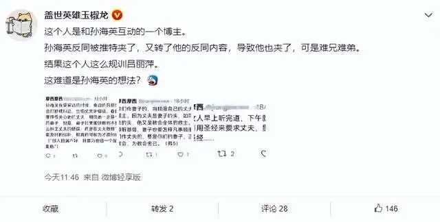 10月21日,大V盖世英雄玉椒龙通过微博爆料称,一位名叫“摩西摩西”的教友经常在海外社交平台上跟孙海英互动,后来跟着转发了一些不好的内容,导致账号也遭到了平台的处理。而这位教友此前还夸赞过吕丽萍,只不过现在却以规训的方式对待。