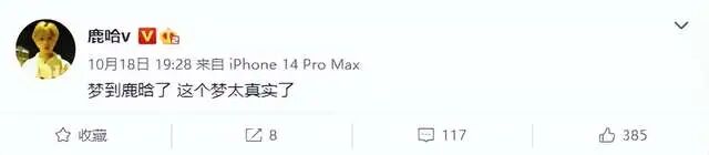 比如前天发微博说梦到了鹿晗,还说这个梦太真实了。