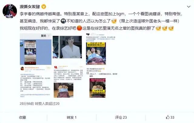 对此,李宇春的歌迷们实在看不下了,直言病情越传越离谱,根本就没有那么严重,全都是一些为了吸睛博众的视频博主,利用李宇春患病这件事,故意配上她多年前在综艺节目里头演无名之辈的图,刻意夸大病情从而骗取流量。