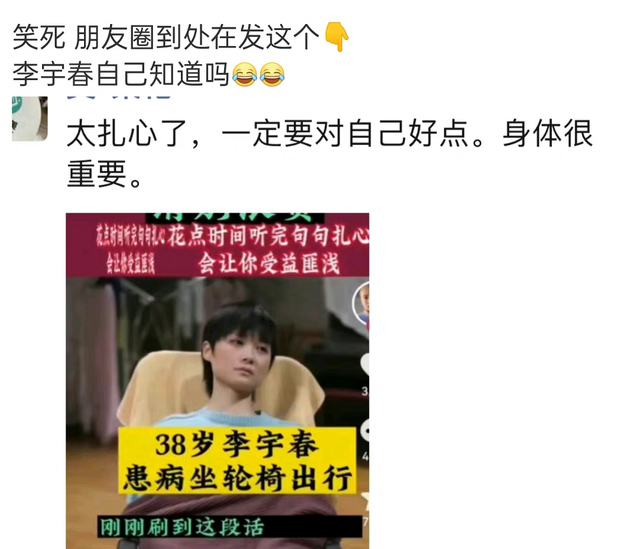 但是一码归一码,李宇春患病的事情,显然被无限放大化了,最主要的还是被夸大了病情,也就是现在朋友圈疯传,李宇春每天都要靠坐轮椅出行,俨然成了一个瘫痪之人,要靠别人照顾她的生活起居。